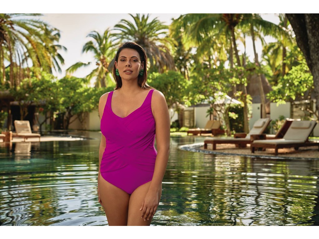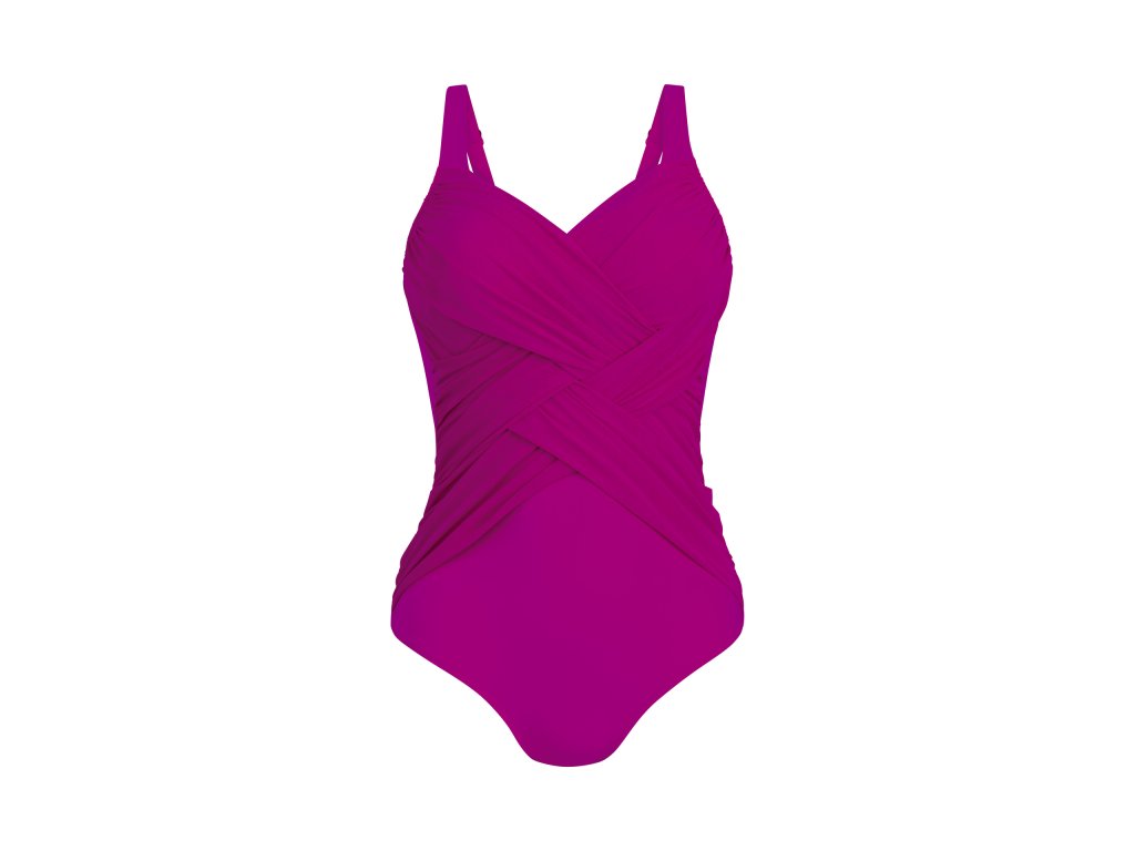 Dámské jednodílná plavky se stahovacím a tvarovacím efektem. Plavky jsou ušity z pevného materiálu a tvarují tělo v oblasti boků a bříška. Atraktivní překřížení pomáhá schovat případné nerovnosti bříška. Střih plavek je oblíbený pro svůj tvarující efekt a letošní růžová barva dojem jen umocňuje.