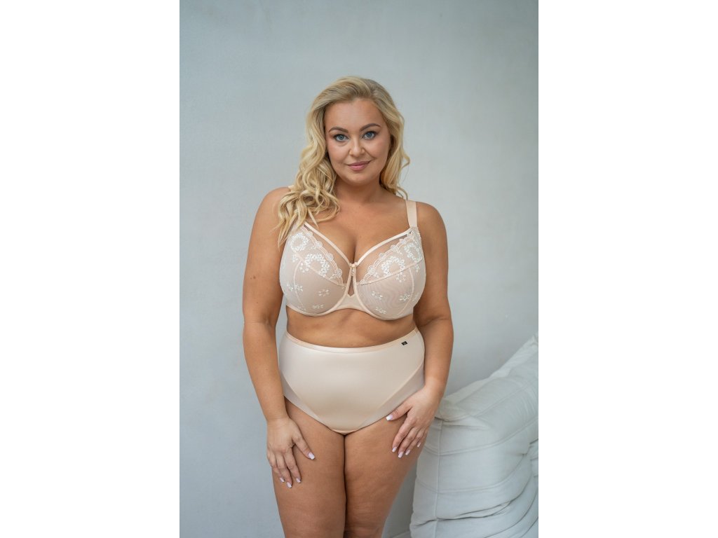 Podprsenka Fortuna je podrpsenka přizpůsobená těm nejnáročnějším ženám. Kostice, košíčky i ramínka jsou důkladně promyšlena, aby vyhovovalo větší tíze prsou a šetřily záda a ramena. Košíček soft full cup znamená, že je vyšší střed a boky a košíček je uzavřený až nahoru do dekoltu, aby správně a pevně podržel i větší objem prsou. Nemusíte už tedy řešit, že si budete muset hlídat dekolt a podprsenku neustále upravovat. Je ušita z jemné dvojité látky, elegantně zdobená výšivkou. Podprsenka Fortuna splní funkci pevné podprsenka, která krásně vytvaruje vaše poprsí a zároveň je ženská a svůdná.