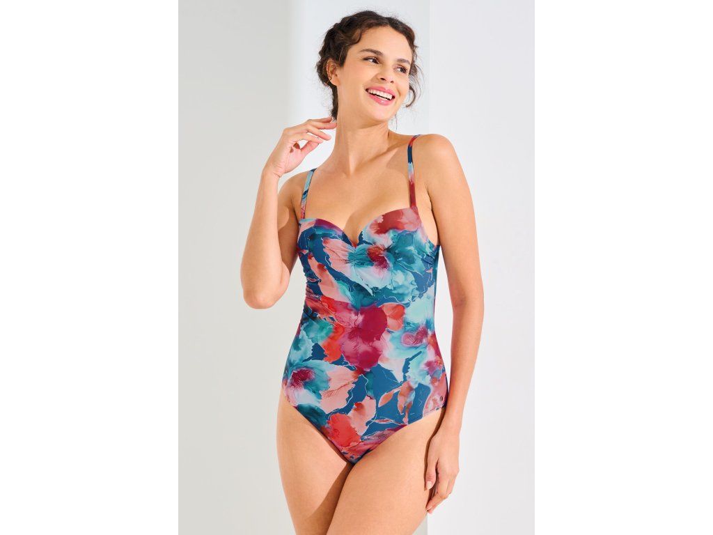 Jednodílné plavky v romantickém květinovém designu s vyztuženými košíčky. Plavky mají nastavitelná ramínka.