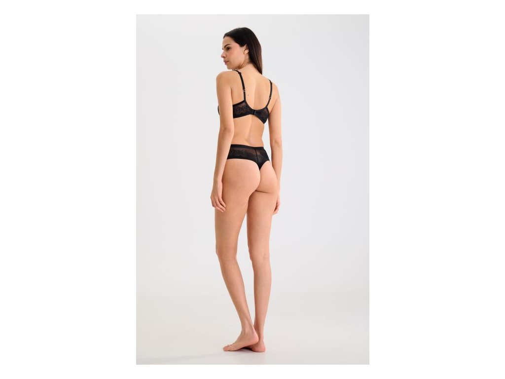 Kalhotky Ruby ve střihu brasil z příjemného hladkého materiálu doplněné elastickou krajkou s krásným motivem. V pase je širší elastická paspulka, v rozkroku je bavlněná vsadka pro příjemnější nošení. Hezká krajka na zadečku. Vhodné pod přílehavé oblečení.