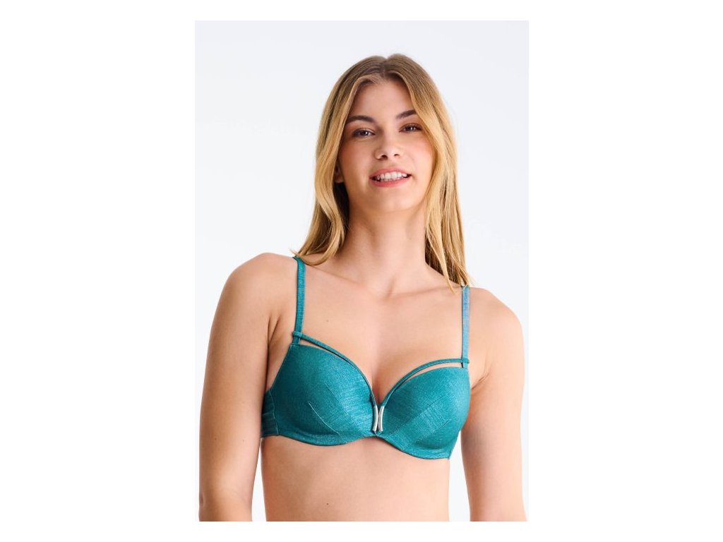 Plavková podprsenka s vyztuženými pěnovými košíčky s kosticemi je z nějnovější kolekce značky Lisca a patří do prémiové řady luxusních plavek. Velmi povedený luxusně vypadající třpytivý design ve spojení se skvělým střihem, který zdůrazní váš dekolt, si hned zamilujete. Doplňte podprsenku plavkovými kalhotkami z naší nabídky a vytvořte si tak nezapomenutelný komplet. Plavky můžete zvýraznit některým z našich plážových šatů, tunik nebo doplňků.