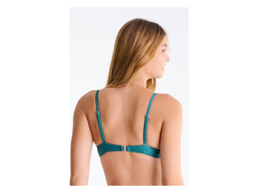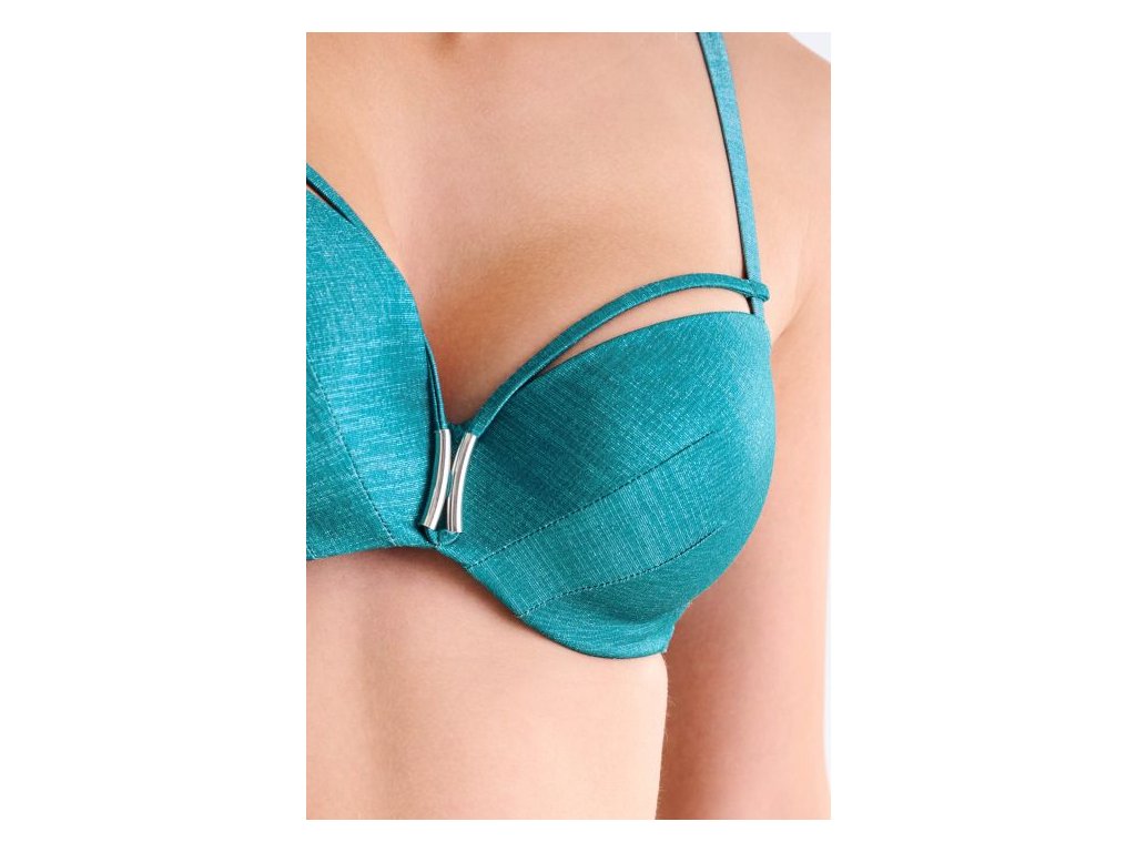 Plavková podprsenka y vyztuženými košíčky a kosticemi v třpytivém tyrkysovém designu