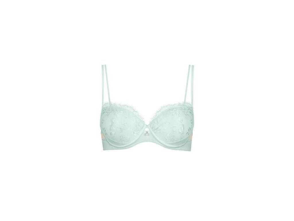 Podprsenka z kolekce Daydream je ztělesněním elegance a romantiky. Košíčky má tvarované pěnové s kosticemi a je potažena jemnou romantickou krajkou a uprostřed je ozdoba v podobě perličky. Má ozdobná špagetová ramínka a zadní část je průsvitná ušitá z tylu. Doplňte kalhotkami nebo podvazkovým pásem ze stejné kolekce a vytvořte si tak nezapomenutelný komplet.