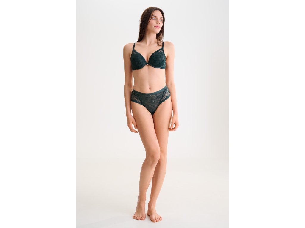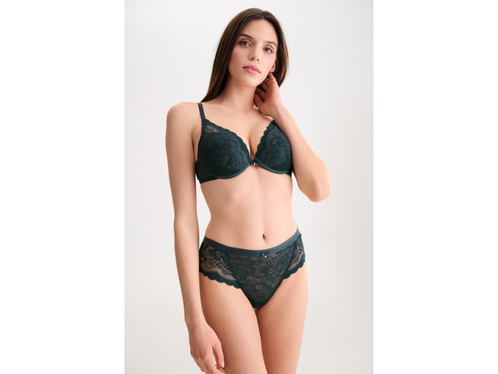 Naše nejprodávanější push-up podprsenka v nové smaragdové barvě! Evelyn je krajková push-upka, která vykouzlí perfektní dekolt. Vytvoří efekt většího poprsí a přetažená krajka se postará o to, aby hezky přilnula a držela. Často se stává, že push-up podprsenky nehezky "odstávají". A tohle právě vyřeší Evelyn.