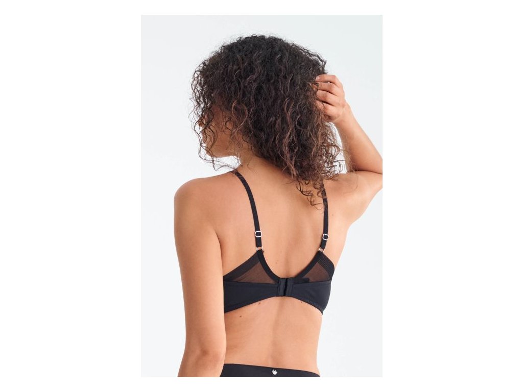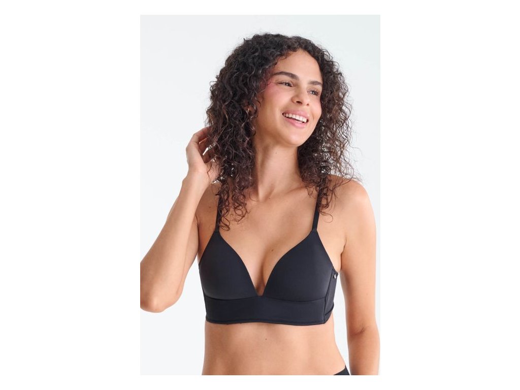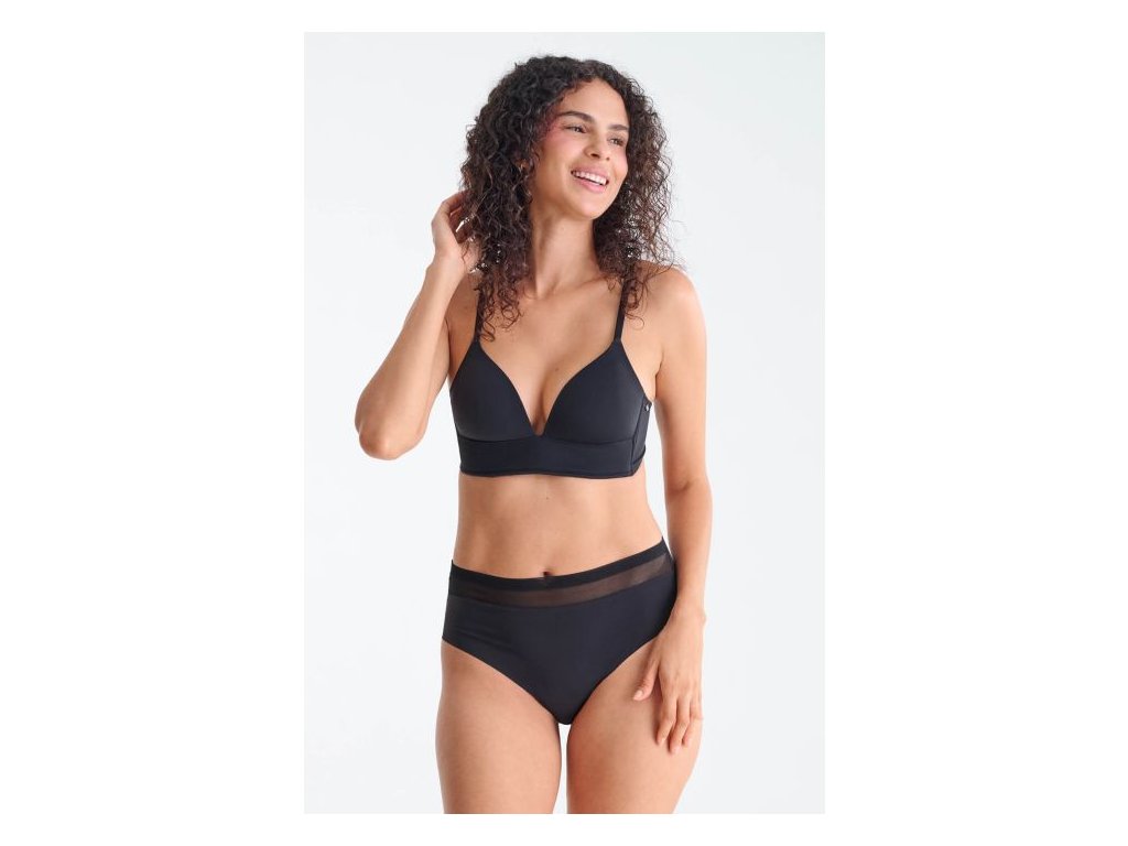 Úplná novinka z jarní kolekce je podprsenka Sia. Je velmi pohodlná a stvořená na denní nošení s naprostým komfortem. Má pěnové košíčky bez kostic a velmi komfortní je i širší pás pod prsy, který je lehce vyztužen pěnou. Módní trojúhelníkový tvar skvěle sedí pod oblečením a vytváří svůdný dekolt. Hladké košíčky pro bezešvý vzhled lze nosit i pod těsné oblečení. Vnitřek košíčků je sametový na dotek a velmi příjemný při kontaktu s kůží. Zadní část podprsenky je zdobená dekorativním detailem z tylu a proužkované bordury na zádech. Nastavitelná ramínk a zapínání na 4 stupně.