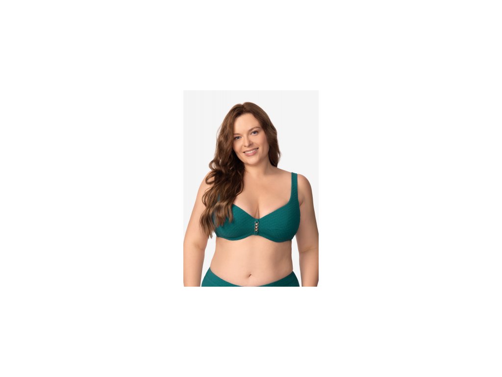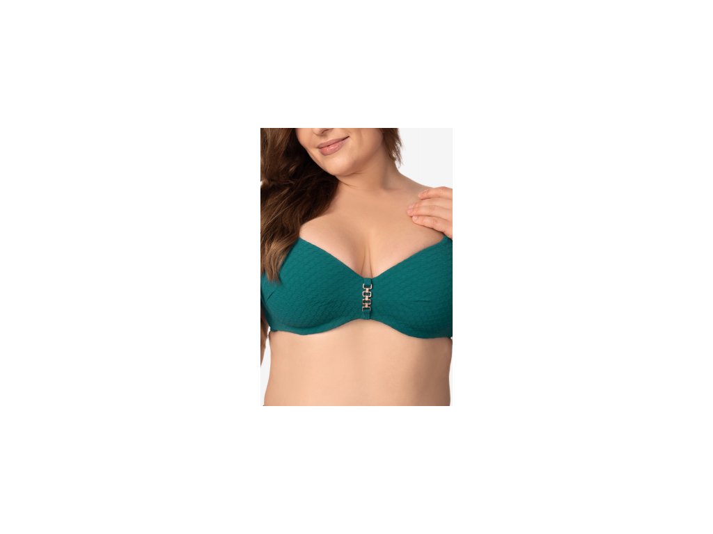 Luxusní plavková podprsenka ze strukturovaného materiálu a kovovou ozdobou