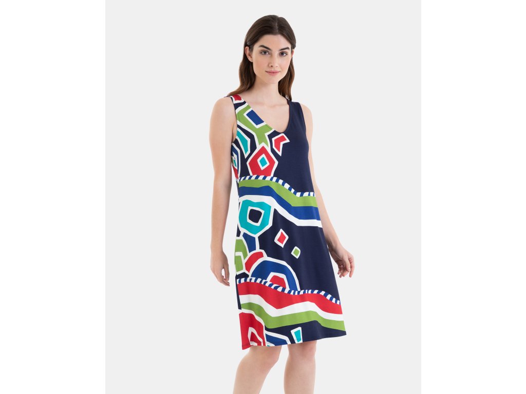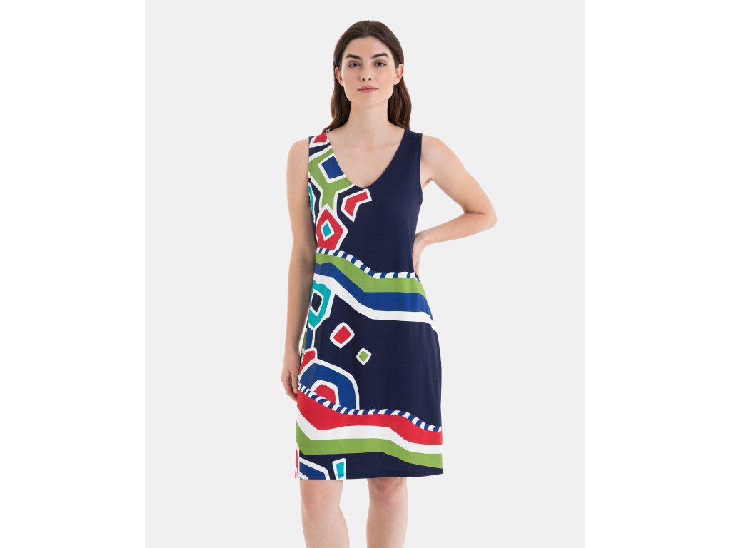 Dámské tmavě modré letní šaty se vzorem