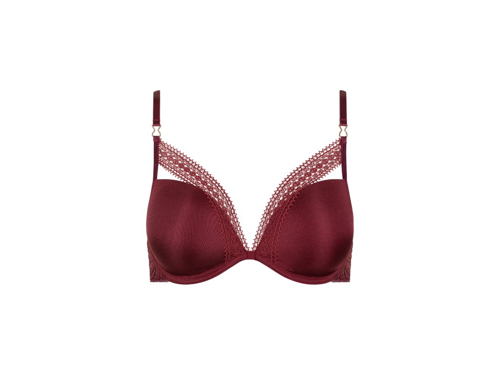 Podprsenka typu push-up s kosticemi pozvedne a vytvaruje váš dekolt. Lehký krajkový proužek přilne k prsu a dotvaruje vaše poprsí. Smyslná granátově červená barva působí nadčasově, elegantně a slavnostně.