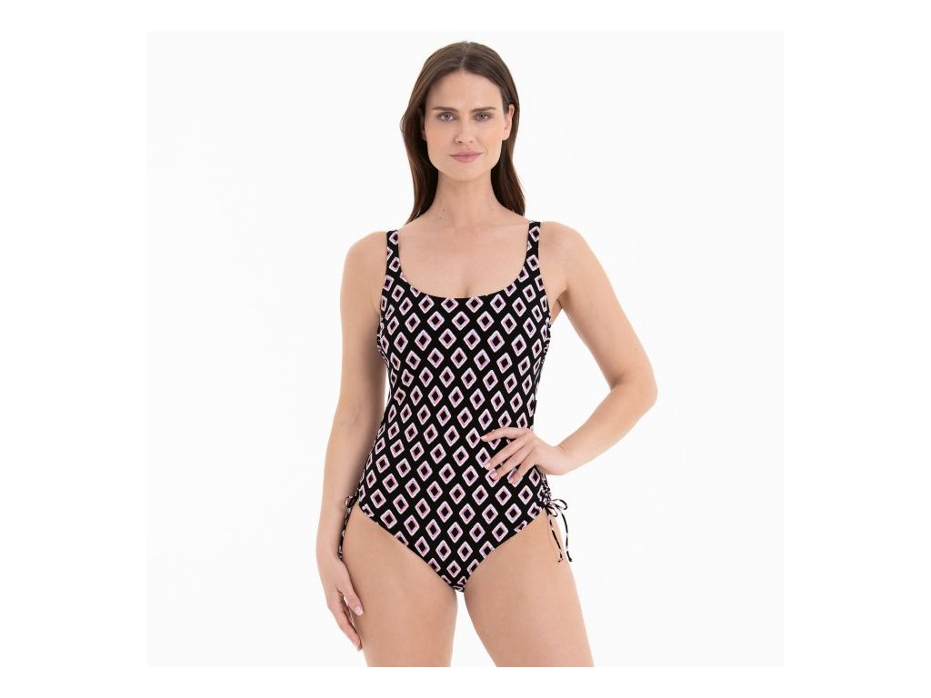 Jednodílné plavky Rosa Faia 7766 spojují elegantní design, funkční střih a spolehlivou oporu, kterou ženy od značky Rosa Faia očekávají. Hladký, pevnější materiál krásně přilne k tělu, jemně formuje postavu a poskytuje komfort i při celodenním nošení. Integrované měkké košíčky bez výztuže vytvářejí přirozený tvar prsou, zatímco podpora v oblasti hrudníku zajišťuje stabilitu i pro plnější poprsí. Propracovaný střih opticky zeštíhluje pas a dodává postavě harmonické proporce. Na bocích je zdrhování, díky kterému si můžete upravit výšku nohaviček a opticky si tak prodloužit nohy.
