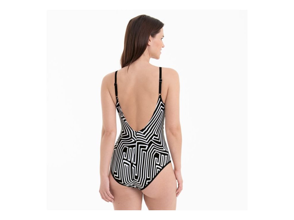 Ženské a minimalistické! Plavky Marinet lákají svým hlubokým výstřihem na zádech a jemně nařasenými částmi na košíčcích. Jednobarevné černé lemování kolem výstřihu, průramků a nohaviček vytváří nádherný kontrast. Jemné detaily, jako jsou vysoce kvalitní dekorativní kroužky na ramínkách, dokonale doplňují klasický vzhled. Jeden z nejžádanějších designů našich zákaznic.