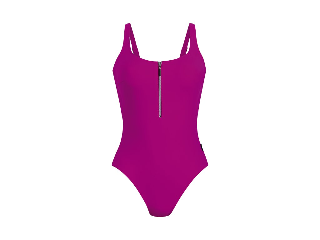 Dámské jednodílné plavky s rozepínáním na zip působí velmi žensky a smyslně. Plavky nemají podšívku, mají vnitřní provedení s gumou pod prsy, aby hezky držely prsa a tvarovaly dekolt. Dlouhý stříbrný zip se dá rozepnout, vypadá moc hezky, když si zip malinkou rozepnete. Působí pak velmi žensky.
