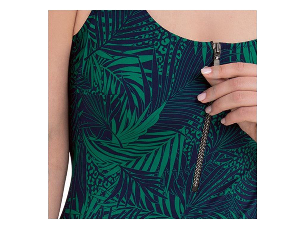 Jednodílné plavky se zipem v exotickém designu