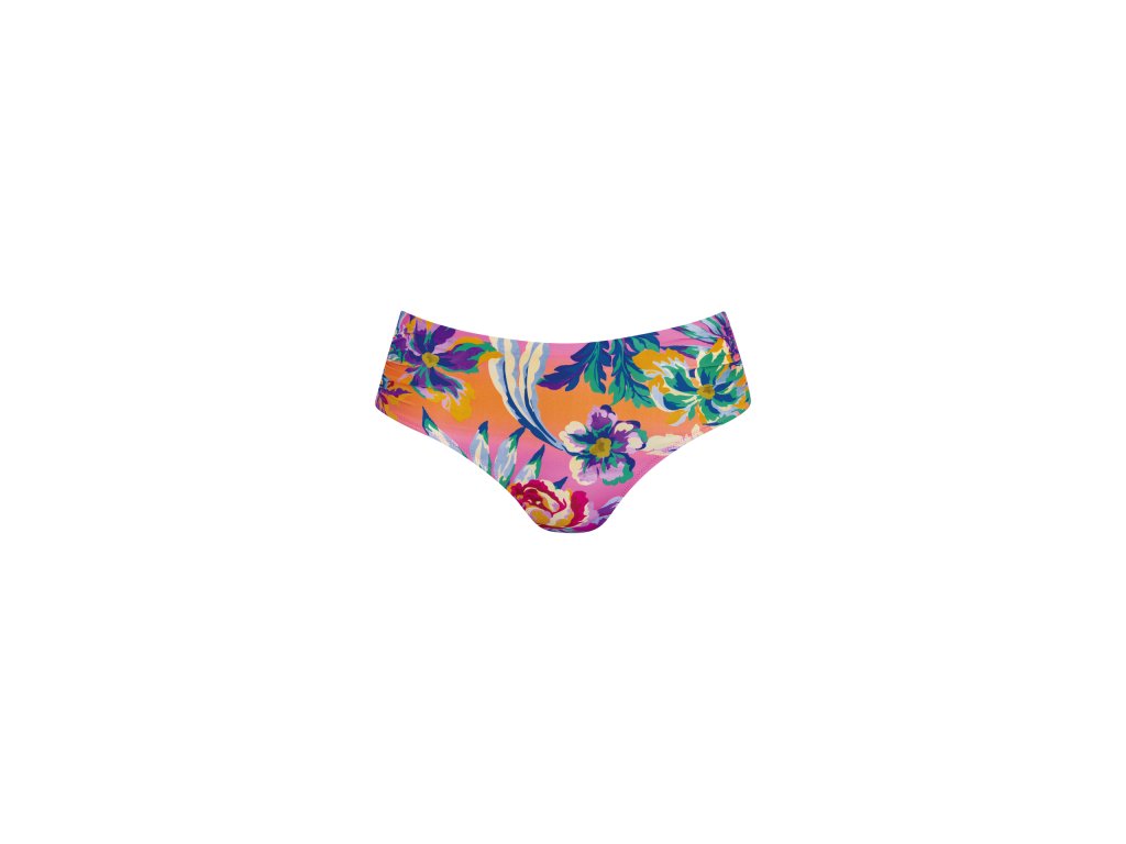 Plavkové kalhotky klasického střihu s vyšším pasem krásně přilnou k postavě a schovají případné nerovnosti. Letní květinový design rozveselí váš dovolenkový den. Ladí k podprsence ze stejné kolekce.