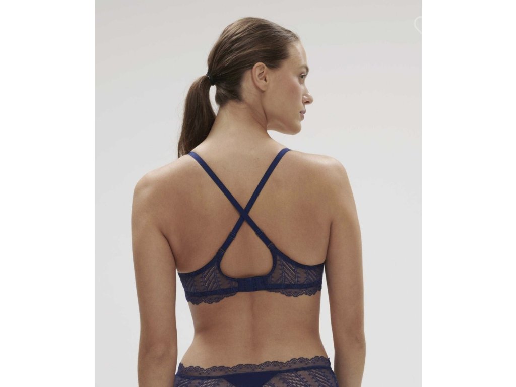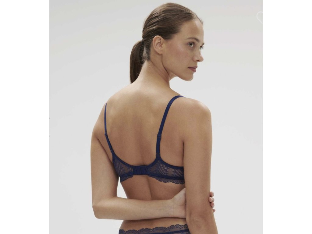 Trojúhelníková krajková podprsenka s kosticemi je rafinovaná a romantická podprsenka. Podprsenka poskytuje velmi dobrou oporu a díky hlubokému výstřihu hezky tvaruje dekolt. Nevyztužené košíčky poskytují pohodlí a komfort po celý den. Ramínka lze nastvit a v přípůadě potřeby křížit na zádech. Vytvořte si krásný komplet a doplňte podprsenku kalhotkami ze stejné kolekce.