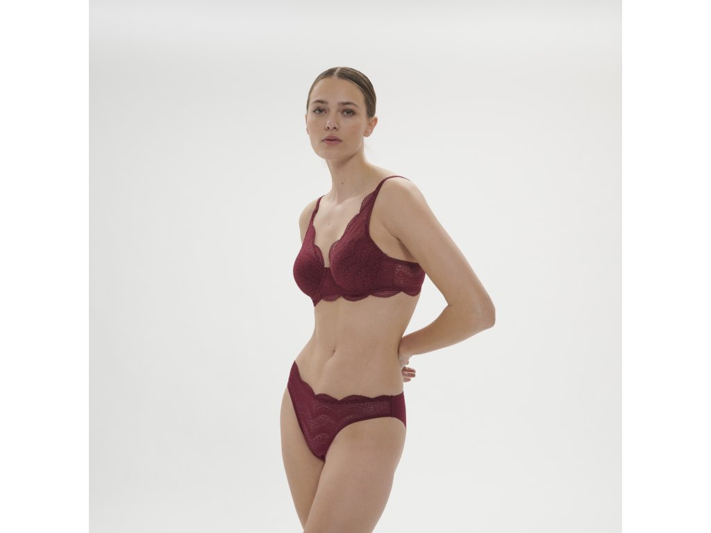 Krajková podprsenka ve tvaru triangle je s kosticemi a vyztuží 3D spacer, která poskytuje naprosté pohodlí, prodyšnost a vytváří přirozeně kulatý tvar prsou. Celá podprsenka i její obvod jsou potaženy krásnou delikátní krajkou a působí velmi žensky. Efektní výstřih do V. Vytvořte si dokonalý komplet s kalhotami ze stejné kolekce Karma z naší nabídky.